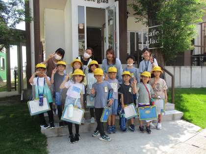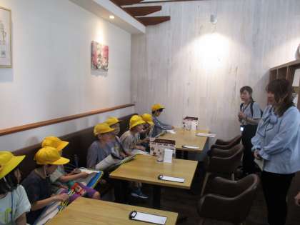 まちたんけんで、船峅にあるカフェの見学をしました。一人ずつ質問し、お店の方に答えてもらうことで、お店の魅力やすてきなところを感じていたようです。