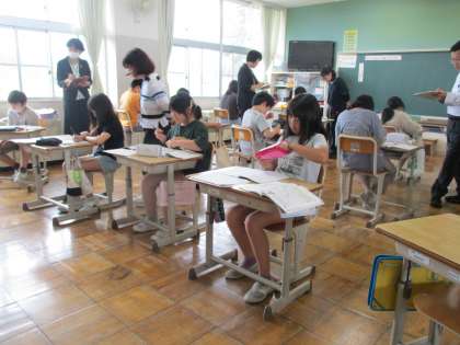 5・6年生は、算数の時間に、自分の進度に合わせて学習を進めていました。たくさんの教員に見守られ、がんばる姿がたくさん見られました。