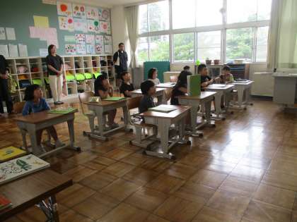 1年生は、生活科で「せんせいとなかよし」の学習を行いました。どのようにしたら、先生となかよくできるかを考えていました。
