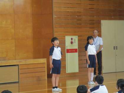 代表の子どもたちが目当てを発表しました。できるようになりたいこと、そのためにがんばることなど、堂々と伝えることができました。