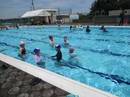 プールサイドの気温は30度を越えていました。絶好のプール日和でした。