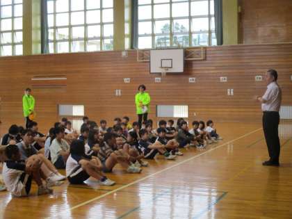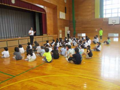 今日は、避難訓練を行いました。天候が悪かったので、体育館へ避難しました。落ち着いて取り組むことができました。