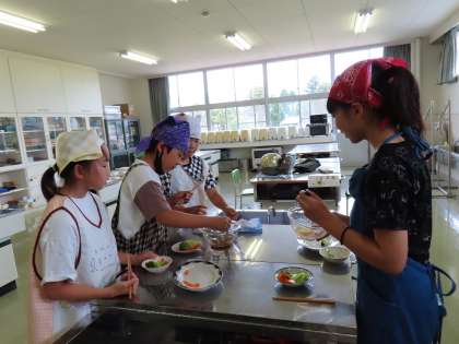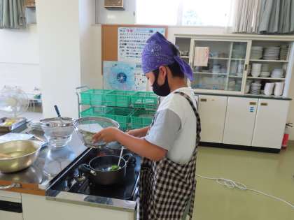 野菜をゆでて、手作りドレッシングで食べました。野菜の種類によってゆで時間が変わることや組み合わせによっていろいろなドレッシングができることなど、多くの学びがありました。