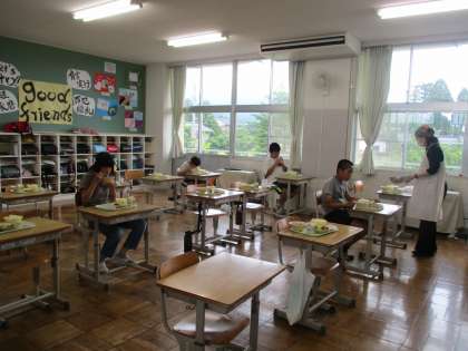 5・6年の教室をのぞくと、給食を食べている人が少なかったです。聞いてみると、お知らせがあるため、放送室へ行っているとのことでした。全校に伝えたいことがたくさんあったようです。