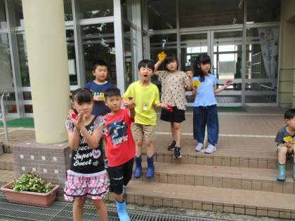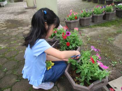 1年生は、生活科の押し花づくりのために、花壇の花を摘みました。