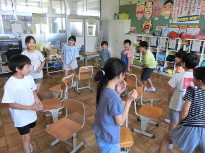 ゲーム係は、いす取りゲームで集会を盛り上げ、短い時間でしたが楽しい集会となりました。