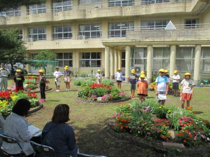 5・6年生は、各班でどのような願いをもってデザインを考え、世話を続けてきたかを発表しました。審査員のみなさんは、うなずきながら真剣に聞いてくださっていました。
