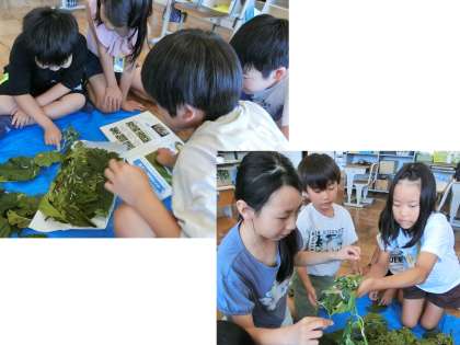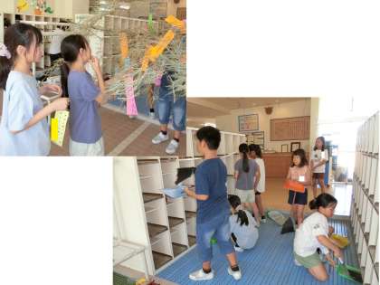 教室では、10日前に生まれたカイコの世話を行い、下足箱のそうじや七夕飾りの片付けも行いました。