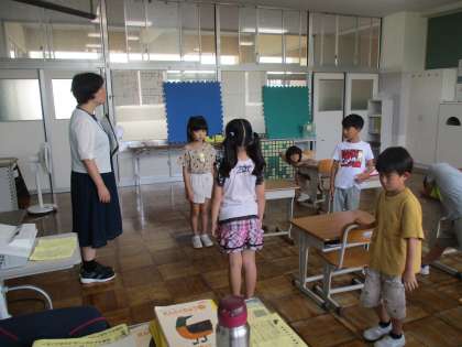 始業式が終わった後、1年生は、教室で振り返りを行っていました。
