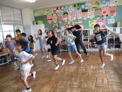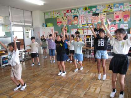 まだまだ暑い日が続いているので、今日はエアコンのかかった教室でダンスを行いました。3・4年生は、のりのりで踊っていて、とてもよい運動になったようです。