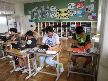 6年生の社会科は、歴史の学習です。一人一人が、本やインターネットで調べたことをスライドにまとめる自由進度学習に取り組んでいます。出来事をつなげて理解できると、歴史のおもしろさが感じられるようです。