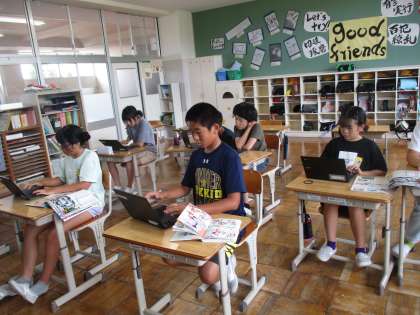 6年生の社会科は、歴史の学習です。一人一人が、本やインターネットで調べたことをスライドにまとめる自由進度学習に取り組んでいます。出来事をつなげて理解できると、歴史のおもしろさが感じられるようです。