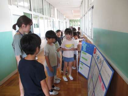 2年生は、他の学年の自由研究を見学し、よさを見付けていました。