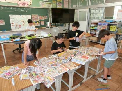 今日の社会科の学習では、集めた新聞のチラシを見比べて、分かることを発表しました。