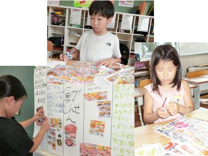 スーパーマーケットのひみつを調べながら、意欲的に学習を進める子どもたちです。