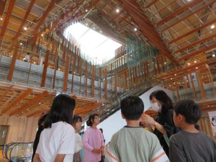 「TOYAMA キラリ」の建物の中は明るく開放的な空間で、ガイドの方の説明を聞きながらガラス作品の鑑賞や図書館の見学を行いました。