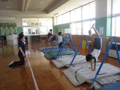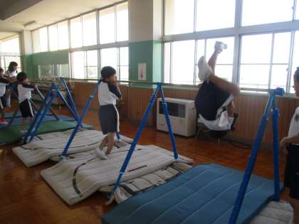 1年生は、体育の時間に鉄棒の練習を行っていました。できる技が増え、生き生きと活動していました。