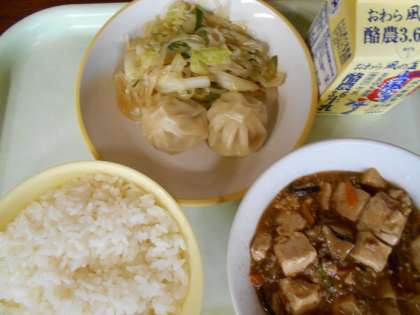 <今日の献立> ごはん 牛乳 えび包子 バンサンスー マーボー豆腐