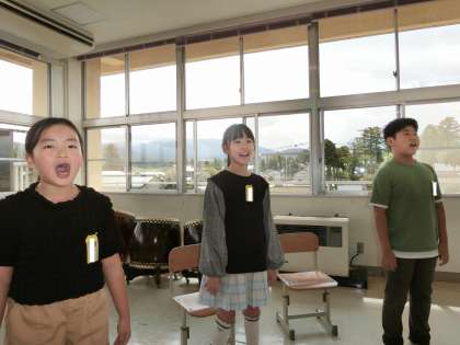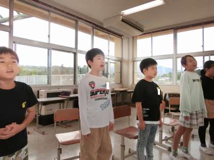 3・4年生は、音楽の時間に連合音楽会で歌う「お陽さまになって」を聴き合いました。