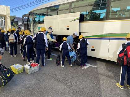 出発式を終え、立山青少年自然の家に向かって出発します。