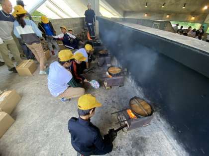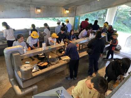 おいしいカレーができるように班ごとに役割を分担してがんばっています。