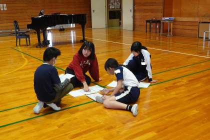 5・6年生は6年生を中心に自分たちで意見を出し合い、立ち方や言い方を決めています。6年生が中心になって考えた「笑顔輝け!船峅っ子 思い出に残る最高の学習発表会にしよう」というスローガン達成に向けて、できることを考え動いています。あと1週間。悔いのない学習発表会になるように、一緒にがんばります。