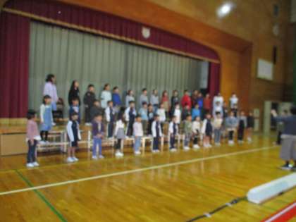 学習発表会に行う全校合唱の練習を行いました。久しぶりに全校で合わせて歌いましたが、とておきれいな歌声が響いていました。