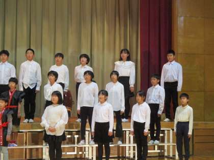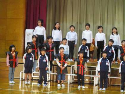 全校合唱では、1〜4年生で「ドレミの歌」、1〜6年生で「お陽さまになって」を歌います。船峅っ子の歌声は、とてもきれいで、聞いていると、とても気持ちよくなります。