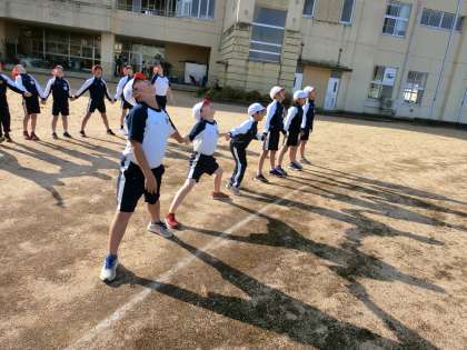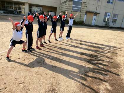 3・4年生は、朝の運動のあとにみんなでかげおくりをしました。