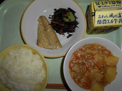 ごはん  牛乳  さばの塩焼き  ひじきのごま和え  じゃがいものそぼろ煮