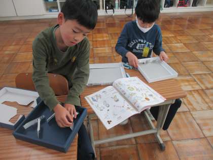 どんぐりやまつぼっくりを使ったおもちゃづくりに取り組んでいます。