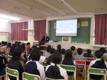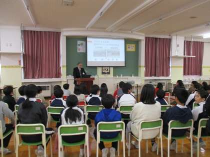 今日は船峅小学校の94才の誕生日です。子どもたちは、学校の歴史や校舎の秘密についての話を聞きました。長い歴史の中で、現在の10倍の児童数だったときもあったことを知り、子どもたちは驚きの声をあげていました。