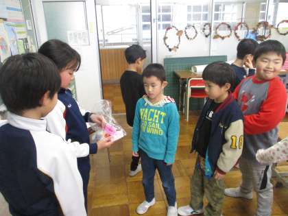 12月15日 3年生からオクラの種をもらいました(1年生)