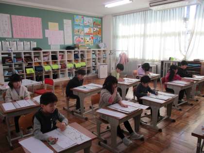 書初大会(1年生) 公開日 2024/01/09 更新日 2024/01/09 1年生 1年生は、教室で硬筆墨を使って丁寧に書きました。冬休みに練習したことを思い出しながら、集中して取り組む姿が見られました。