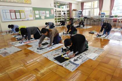 静かな空気の中、集中して1文字1文字書いていました。今年も成長できる1年にしたいという思いが伝わってきました。
