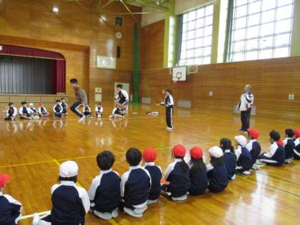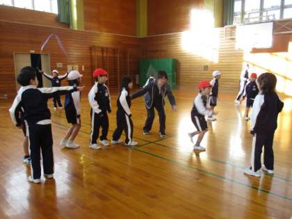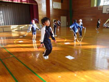 最後に、なわとびが上手な高学年がいろいろな技を披露してくれました。