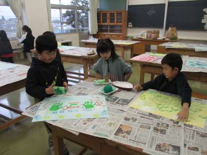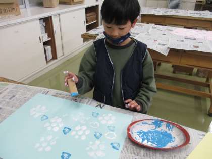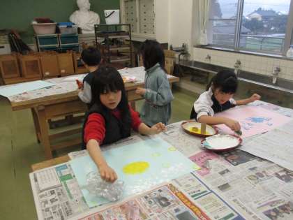 2月1日 図画工作科「うつしたかたちから」(1年生)