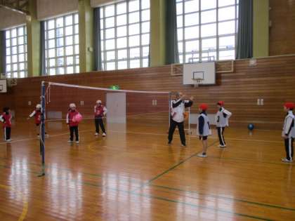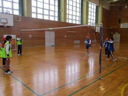 3・4年生は、体育科でキャッチバレーを楽しんでいました。ボールを落とさないように、チームで声をかけ合っていました。