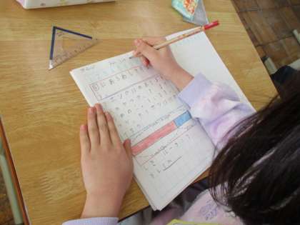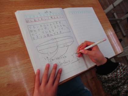 2年生は、算数科「図をつかって考えよう」の学習に取り組んでいました。何を求めるのかをはっきりさせるために、テープ図をかいていました。分かりやすくノートにまとめることができています。