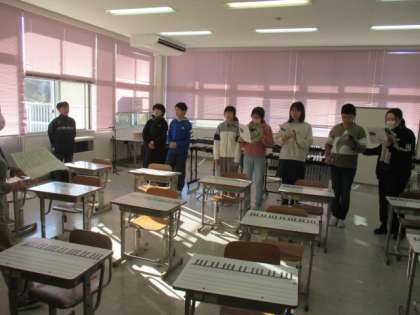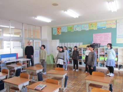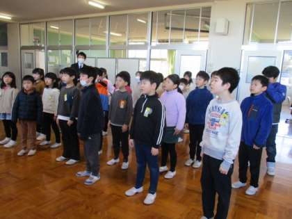 今日は、卒業式で歌う曲の練習を行いました。1〜5年生は各パートに分かれて、音程を確認しました。6年生もがんばっています。