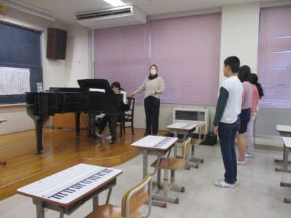 卒業式で歌う歌を練習しています。とてもきれいな歌声です。