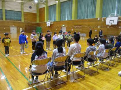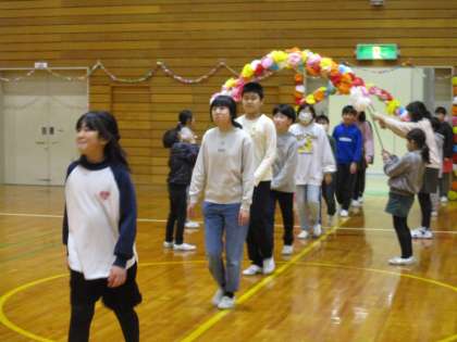 3月7日 卒業を祝う会 公開日 2024/03/07 更新日 2024/03/07 学校行事 3・4・5年生が中心となって、すてきな卒業を祝う会を企画してくれました。 各学年が手紙や替え歌、クイズやゲームを通して、6年生への「おめでとう」「ありがとう」の気持ちを伝えました。 6年生からのお礼の言葉に、みんな、別れの日が近いことを実感し、6年生との残りの日々を大切にしようという気持ちをもちました。