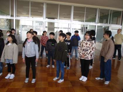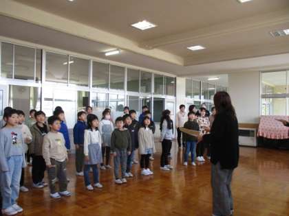 今日は、1〜5年生で歌を歌いました。明るいきれいな声で美しいハーモニーが響きました。