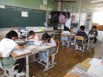 3・4年、5・6年は学級活動を行いました。学級目標や児童会スローガンについて考えていました。