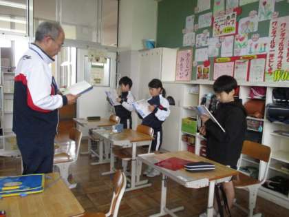 4年生は国語の学習で、「白いぼうし」の音読をしました。役になりきって上手に読んでいました。