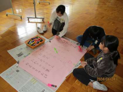 今日の6時間目は、5・6年生は、明日の入学おめでとう集会・結団式に向けて、準備や計画をしていました。