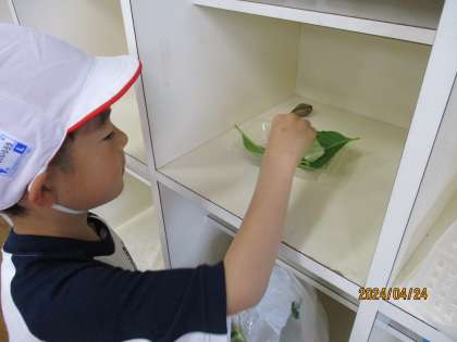 かたつむりの観察をしたり、えさやりをしたりしました。