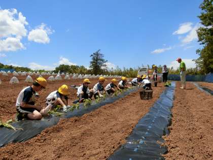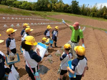 今日は広い農園を見学させていただき、さつまいもの苗を植える体験もさせていただきました。