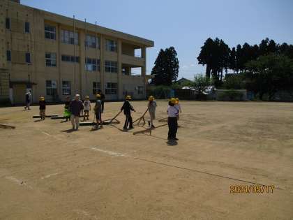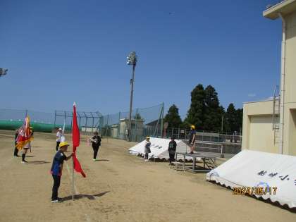 午後から、4〜6年生は明日の運動会に向けて、会場の準備・整備、そして開閉開式の最終リハーサルを行いました。