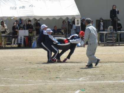 上学年の団体競技は、タイヤ引きを行いました。